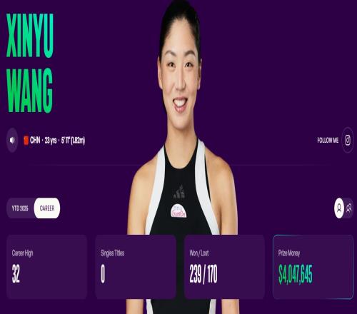 追平生涯最佳!王欣瑜实时排名世界第32,有望成为温网种子选手
